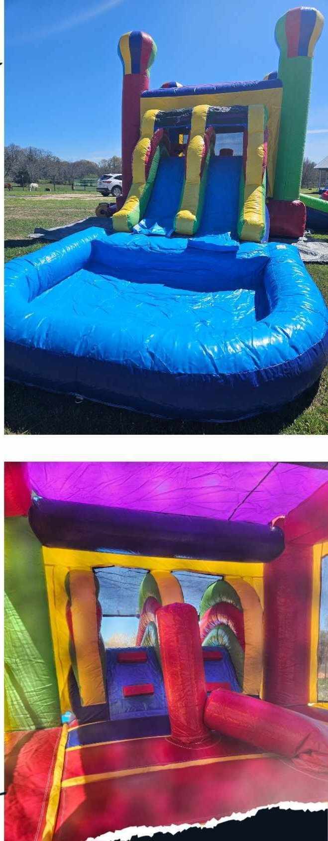 A bounce house, a slide and water is the best way to go! Summer gets hot and so do kids.. Why not take away the heat and add water to your outdoor party or BBQ? We have the perfect combo for this task. The Dual Lane Combo adds the perfect amount of fun to a party with a missing centerpiece.