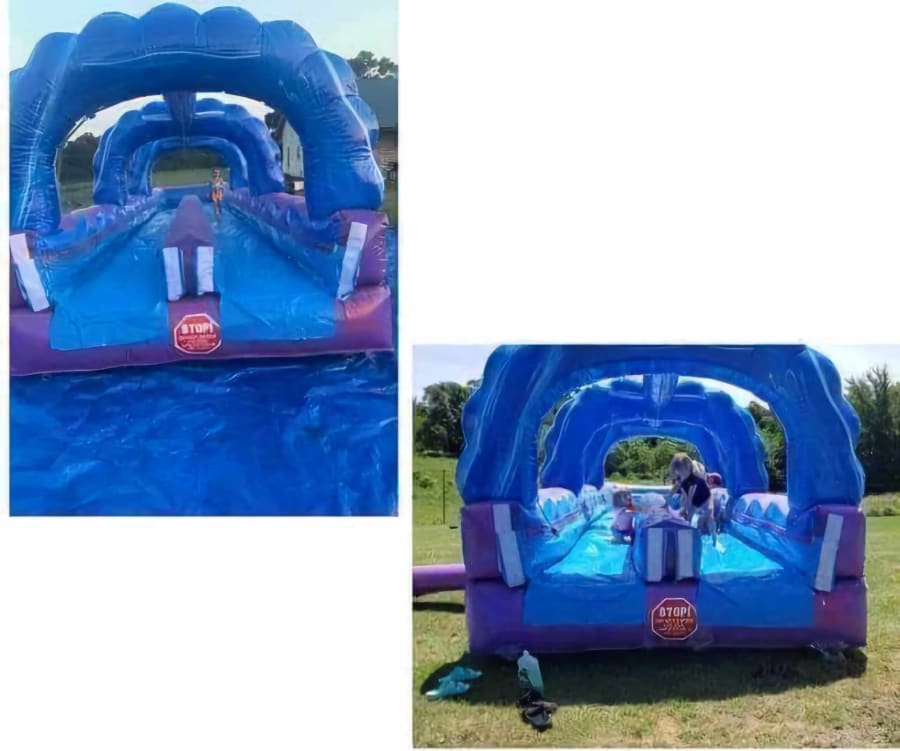 This slide is sure to liven the party, especially if competitions are your forte. 36' of pure fun as you race to see who has the best technique around! The Slip N Slide allows partygoers to enjoy a daring slide to the end where they will end in a pool of cool water.